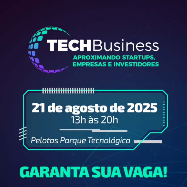 O TECHBUSINESS Aproximando startups, empresas e investidores, é um evento promovido pelo Núcleo de Inovação da Associação Comercial de Pelotas, no Pelotas Parque Tecnológico, com o objetivo de fomentar a inovação, incentivar o desenvolvimento de novas tecnologias e proporcionar a aproximação entre as startups e seus serviços, as empresas que podem utilizá-los, e os investidores, contribuindo para o desenvolvimento do ecossistema de inovação da Região Sul e criando novas oportunidades de negócio.